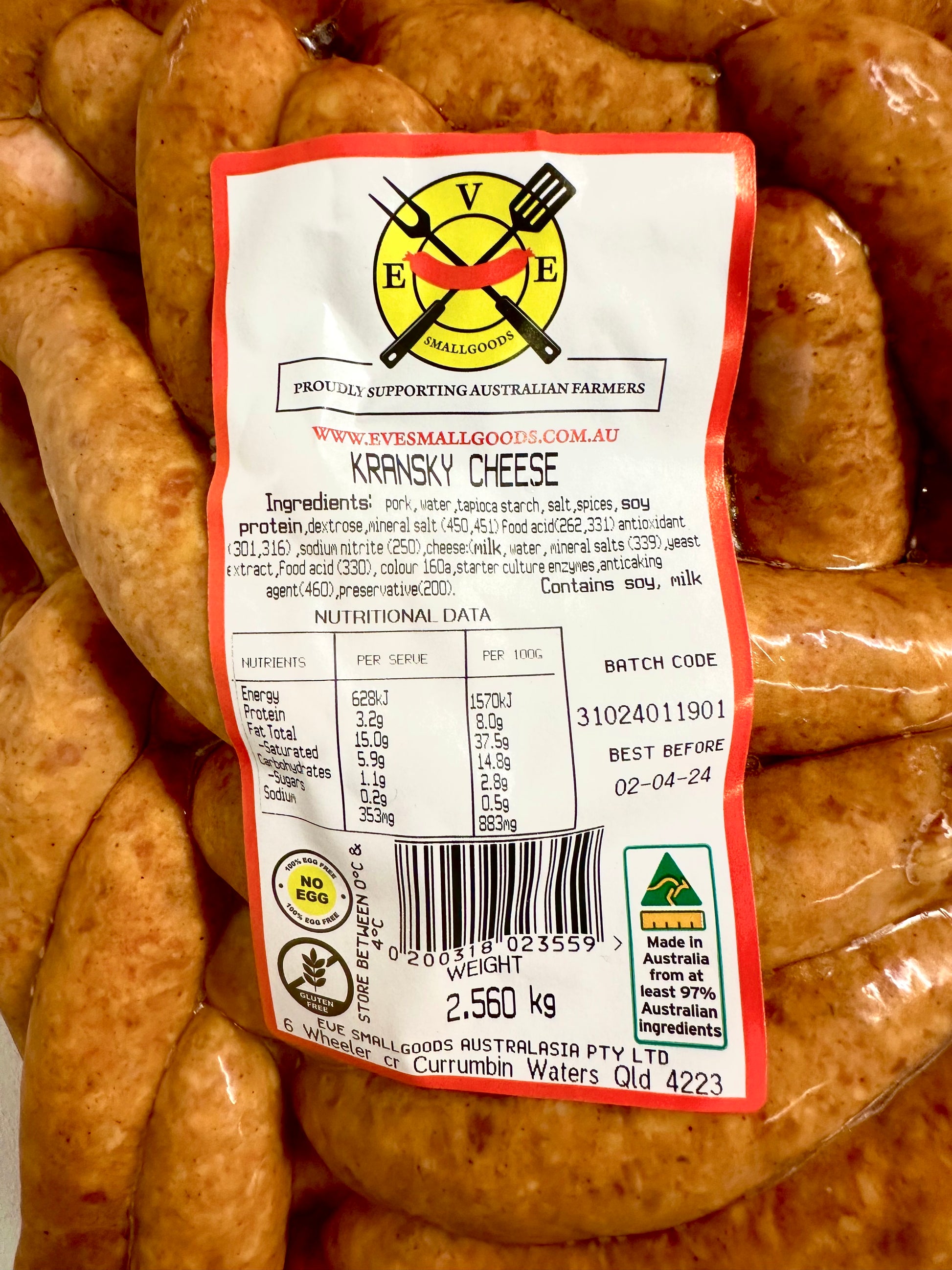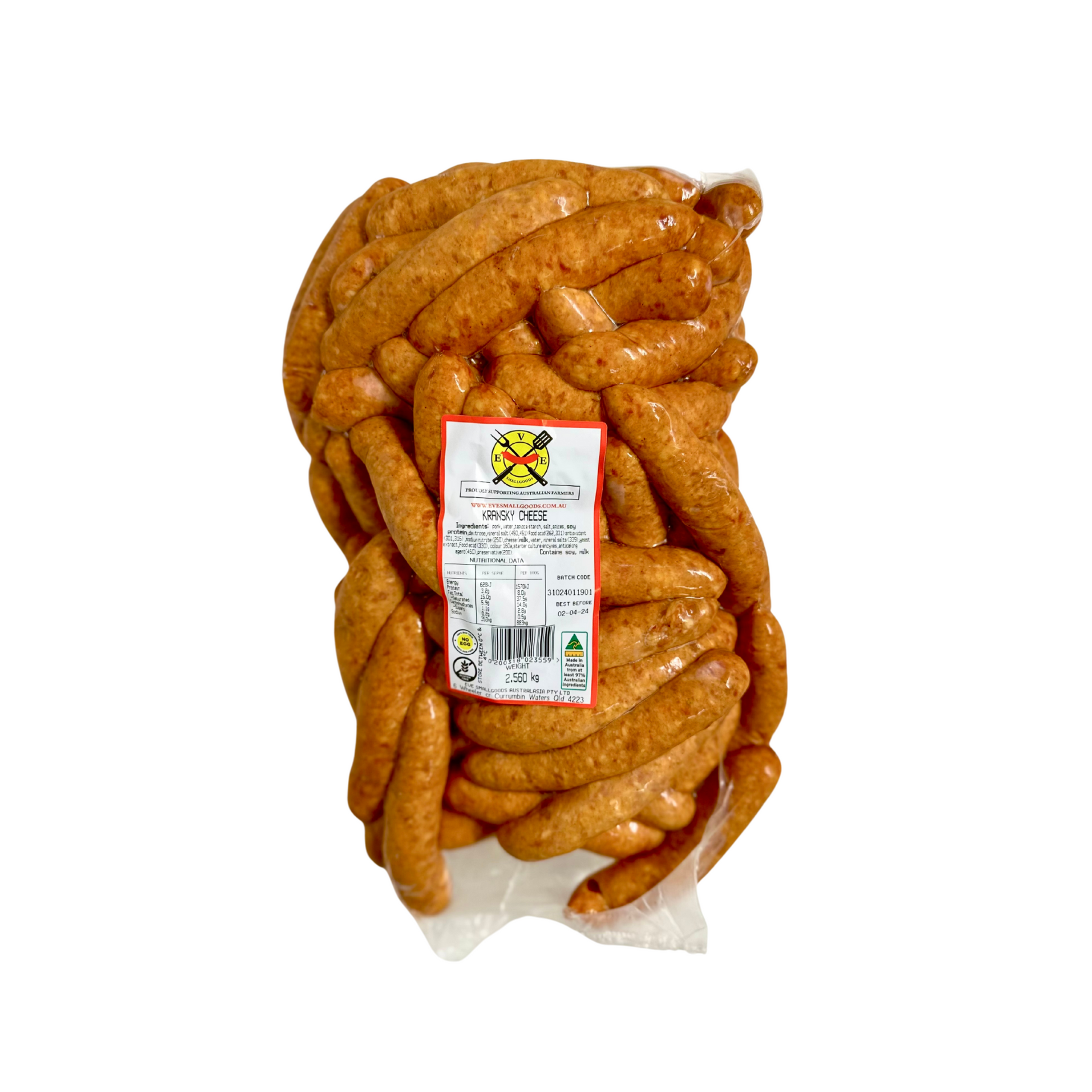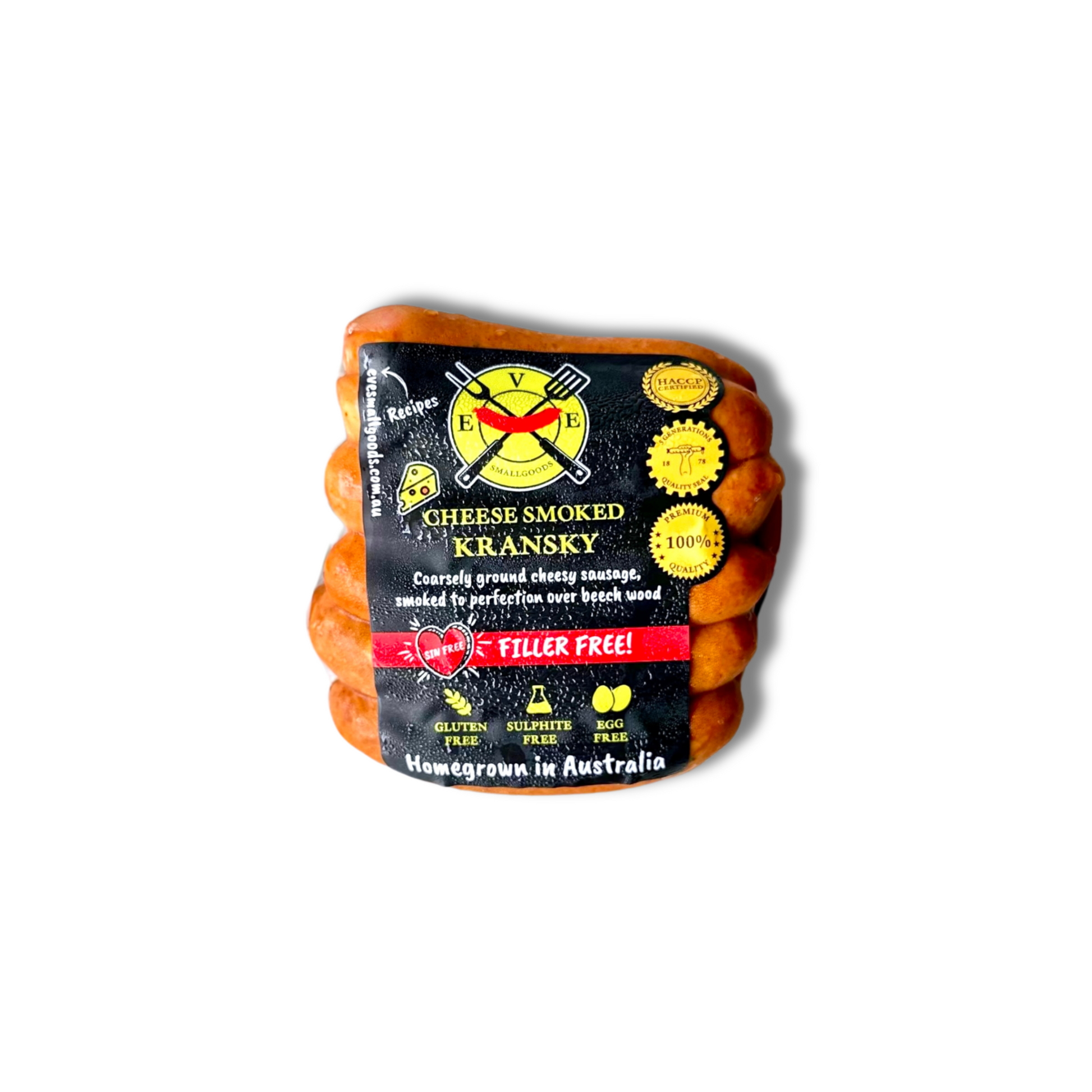 Originating in Slovenia, the Kransky cheese-infused smoked sausage has risen to prominence as an enduring Australian breakfast favourite. This exquisite pork sausage is thoughtfully seasoned with premium spices and thoughtfully blended with chunks of high-quality cheese, which beautifully melts during the cooking process. The meat undergoes a meticulous smoking process using beech wood, and its natural casings provide a gratifying audible "crack" when first savoured.